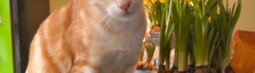 Omdat de keuken zo heerlijk opgeruimd is heb ik maar wat lente in huis gehaald. De katten zijn er ook blij mee. De schaal met tulpen wordt helemaal overhoop gehaald, de bloemen liggen her en der op de grond. Niets is zo lekker als drinken uit een bloemenvaas. Voor een kat.