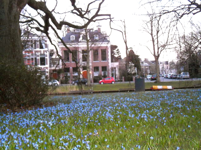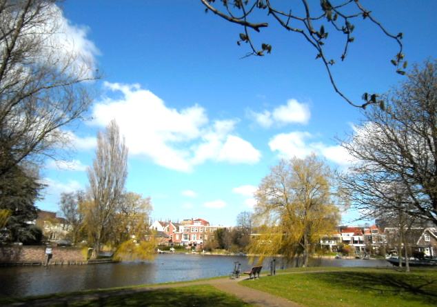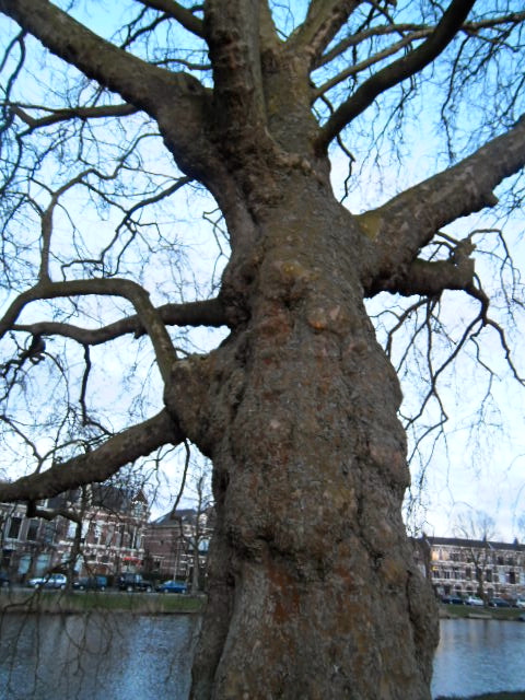 Vanavond fiets ik nog een rondje door een zwoele stad. Er gaat iets feestelijks uit van de bloeiende bomen en struiken in de parken en drukbezette terrasjes langs de waterkant. In het plantsoen zit een dame op een bankje heerlijk te lezen met een kopje thee erbij. Verderop staan toverheksjes een boom te knuffelen. “Is het wat, deze oude stadspark-reus?’, vraag ik in het voorbijgaan.