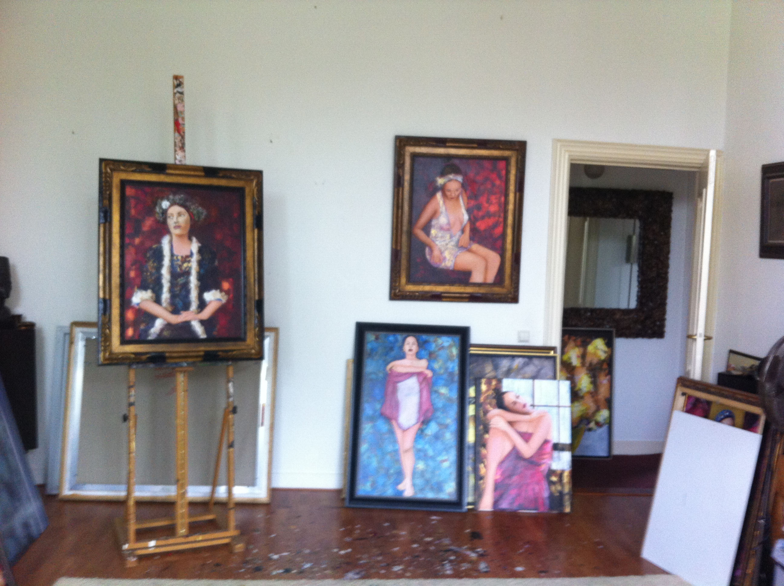 Na al deze heerlijke gedachten ga ik even bij mijn vriend, Willem van Scheijndel, de schilder langs. Hij heeft allemaal prachtige portretten staan van zijn vaste model sinds jaar en dag. “Ik zit in een figuratieve periode,’ zegt hij. Gelukkig kloppen bij hem de verhoudingen wel. Het is een echte vrouw. Heel erg mooi ook, dat kun je mijn vriend wel toevertrouwen. Hij heeft een timmermansoog voor fraaie vrouwen.