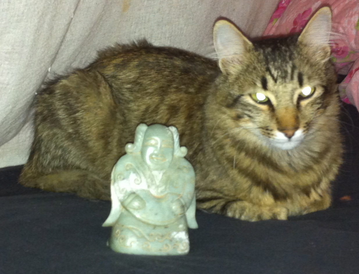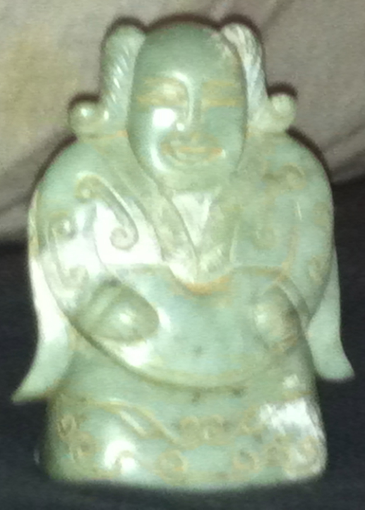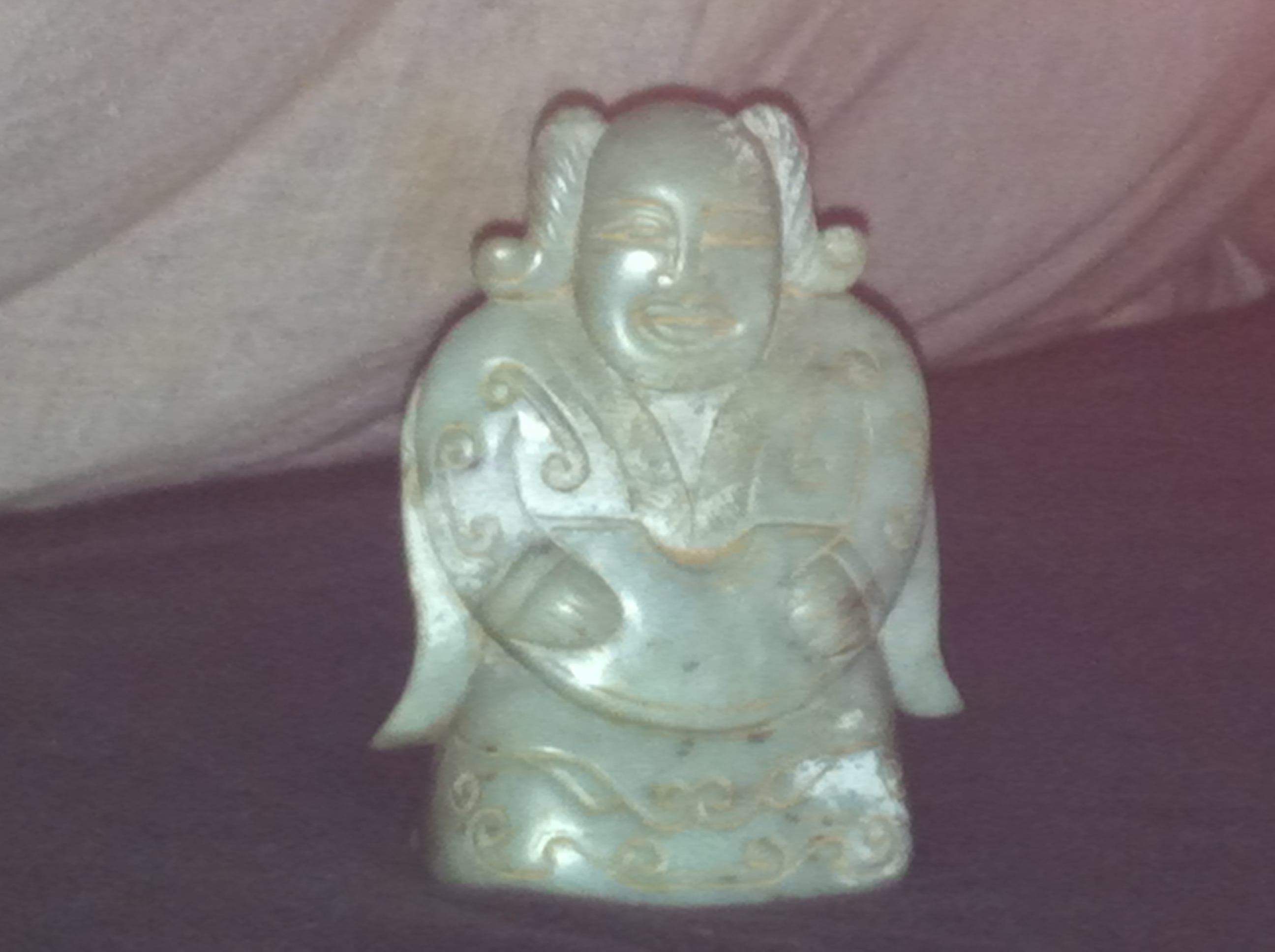 Je moet weten, dat deze man altijd de meest bijzondere Chinese artefacten in zijn winkel heeft staan. Met pijn en moeite geïmporteerd. Dat doet me denken aan een klein beeldje, dat ik het venster van de winkel zag staan. Het leek me aan te kijken….