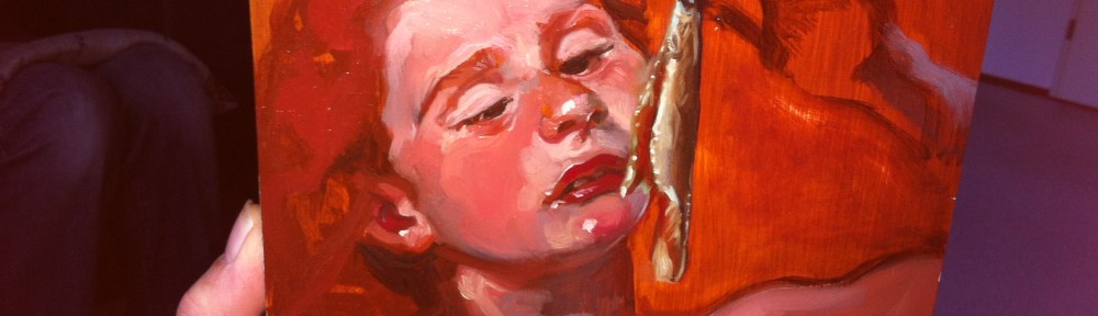 ‘Wat kun je toch blij worden van kunst’ zeggen we tegen elkaar. Mijn maatje haalt een schilderijtje tevoorschijn, dat ik nog niet eerder gezien heb. Prachtig. Dit meisje met de haring heet : ‘Proeven’ en is gemaakt door Eva de Visser. Dit is haar website.