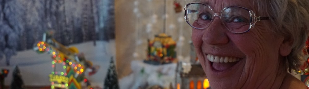 Uitgebreid maak ik filmpjes en foto’s van dit kleine kerstparadijs. Tot slot poseert Mevrouw Kerstvrouw naast haar enorme kerstman. Zelf gemaakt van een etalagepop. ‘Mijn man heeft em destijds vervoert op de scooter, in onderdelen. Roept iemand de volgende dag tegen hem, wat of hij met dat lijk heeft gedaan waar hij mee rondreed ….! Hahaha.’ Heks ziet het voort zich. Geweldig, wat een grap!