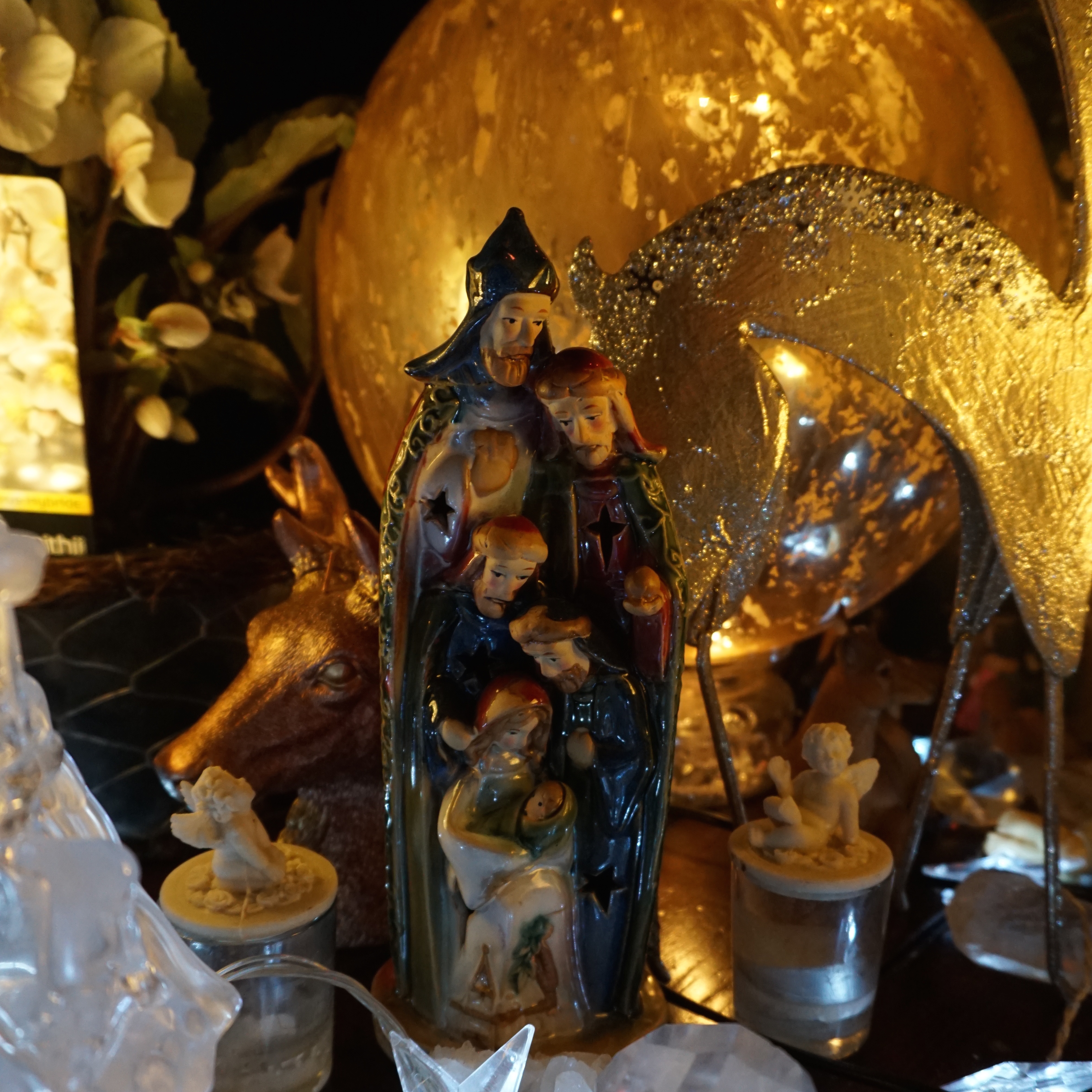 KERSTVERSIERING, TAFEL, KERSTDINER, KERSTALLETJE, HERTEN, KAAARSEN, ENGELEN, LICHTJES, KERST, BLOEMEN, TAFELSCHIKING KERST