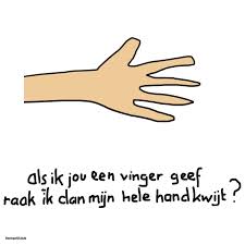 als ik je een vinger geef, raak ik dan mijn hand kwijt,