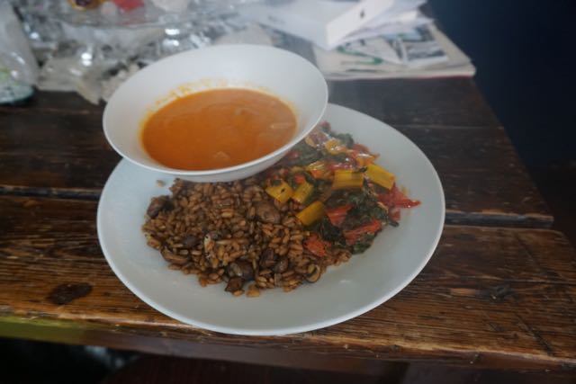 risotto met paddestoelen, paprikasoep, snijbiet