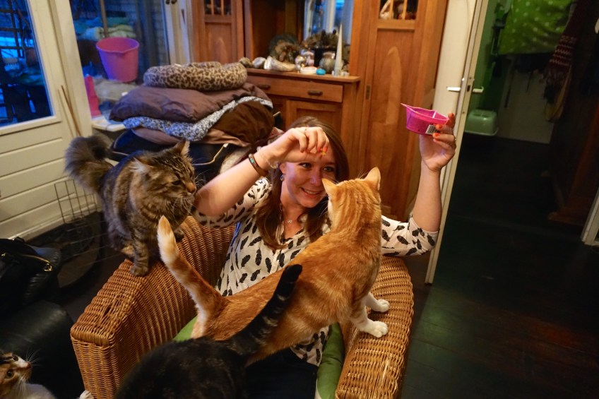 Published 29 maart 2016 at 6000 × 4000 in Morning after….. Altijd even slikken. Pijnstillers in mijn geval. Maar ook: Het is weer zo ver! Gezellig samenzijn met poezenvriendin! Alle poezen geaaid en verwend. Varkentje ook blij.