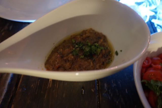 rode poon met broccoli, boontjes en rijst, tomatensalade, komkommer, munt