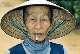 zuurpruim, azijnpisser, oude zeur, pissig met Vietnamese hoed