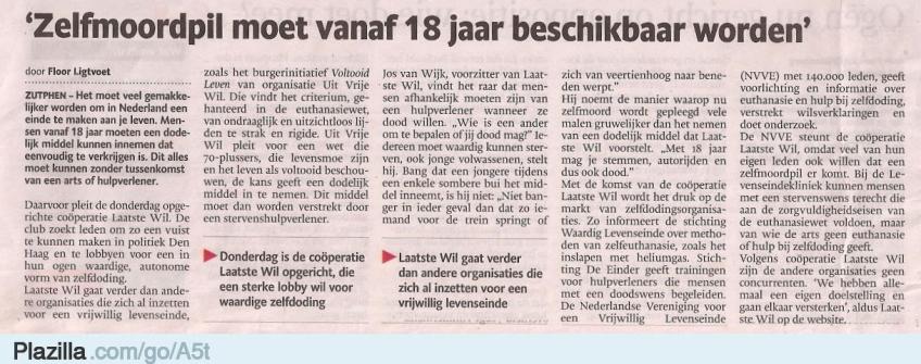 Published 26 mei 2016 at 1217 × 482 in Zelfmoordpil voor als je niet meer wil. Beschikbaar voor iedereen? Of voor mensen boven de 18? Of vanaf 80 jaar? In de aanbieding bij het Kruidvat? Gewoon online te bestellen? Vragen, vragen……. Of moet je het leven maar verdragen?