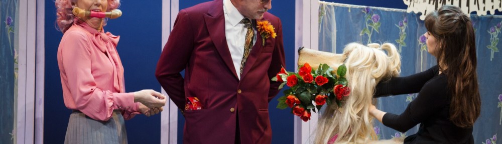 De gigantische hond van Arjan rende ook door de steeg herinner ik me. En Beppie. Zij rende niet, maar schreed. Heks is een grote fan van Beppie Melissen. Ik was dan ook zeer verguld toen ze helemaal verliefd werd op mijn puppy. ‘Oh’ en ‘Ah’ klonk het dagelijks uit haar beroemde mond. Aan het eind van de voorstellingenreeks kreeg Heks een enorme bos bloemen van haar cadeau. Of beter gezegd: De kleine Ysbrandt kreeg een ruiker!