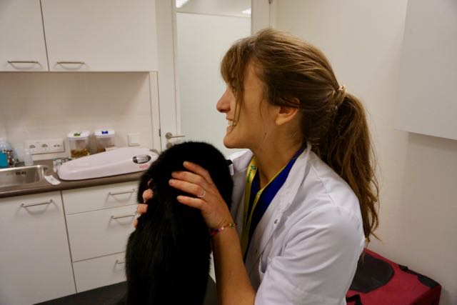 op de weegschaal bij de dierenarts, kat, lapjeskat, vaccineren, tuincentrum Ranzijn, nieuwe praktijk dierenarts,