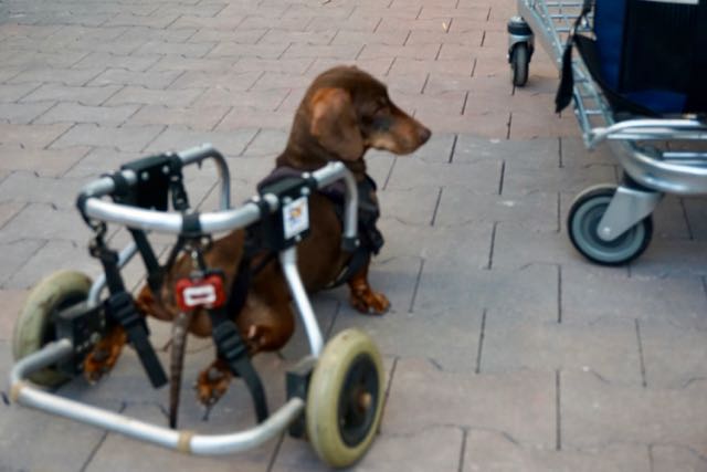tekkel in rolstoel hond in rolstoel, gehandicapte hond, tekkeltje,