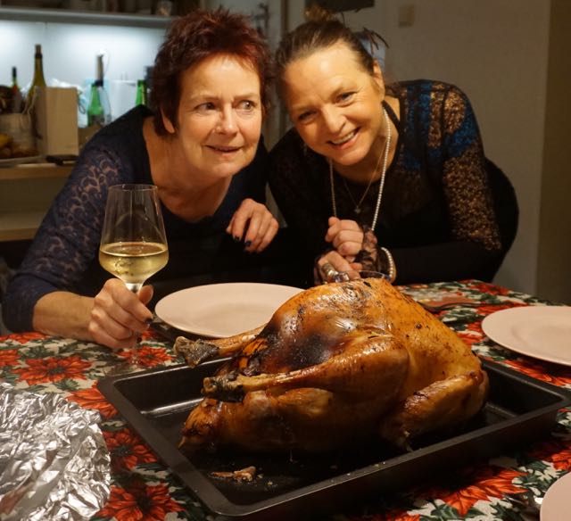 Published 29 december 2016 at 640 × 584 in Heks en Steenvrouw kleden kale kerstkalkoen aan met keur aan kleurige groenten. Zelf lopen we allemaal in het zwart: Hartstikke chic!