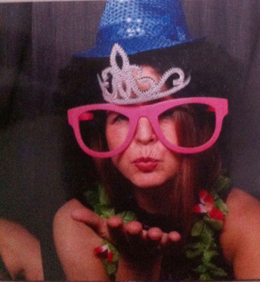 TOVERHEKS.COM , vrouw met grote bril, kushandje geven, tiara, hoed en pruik, bleoemenslinger