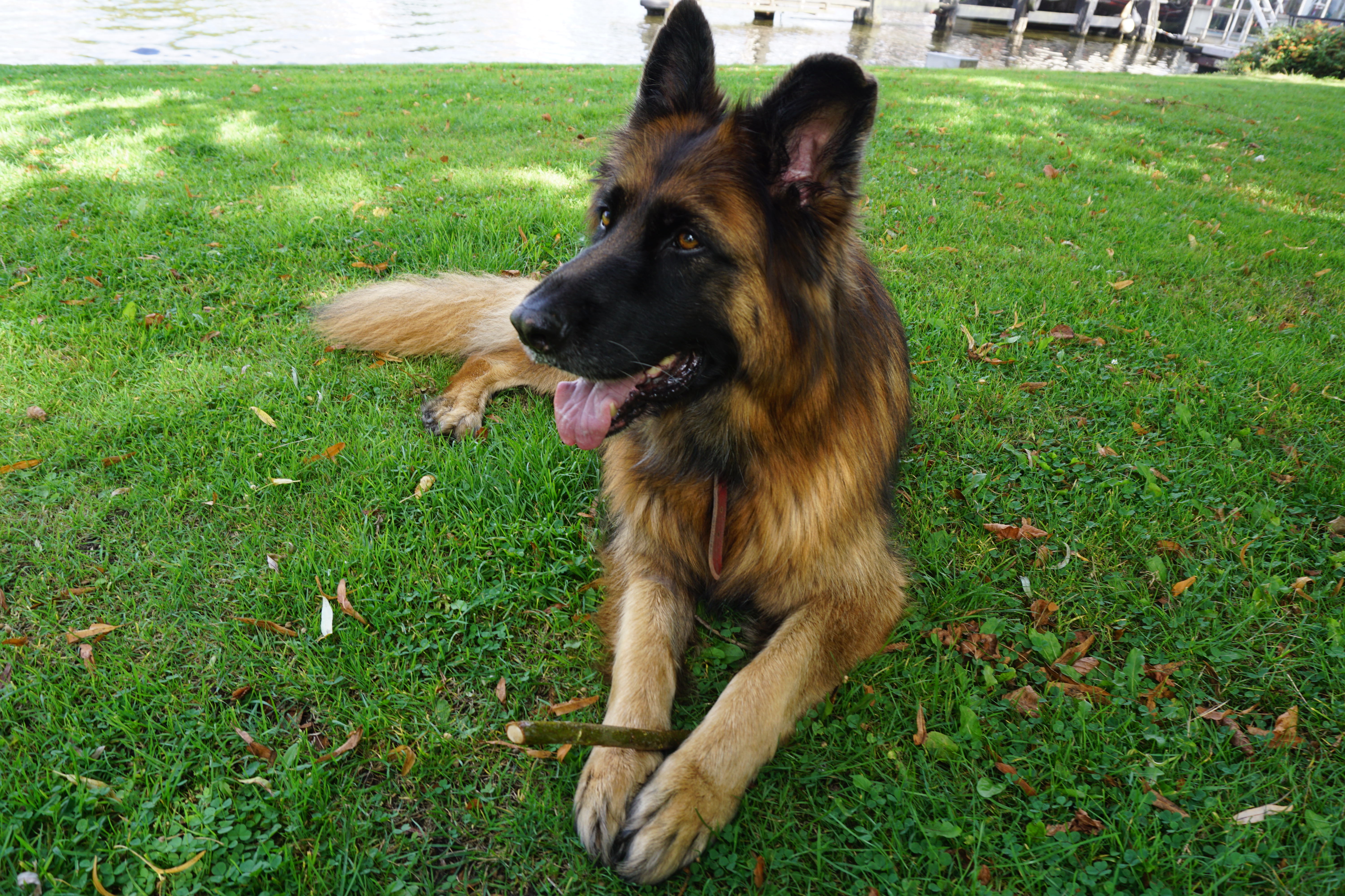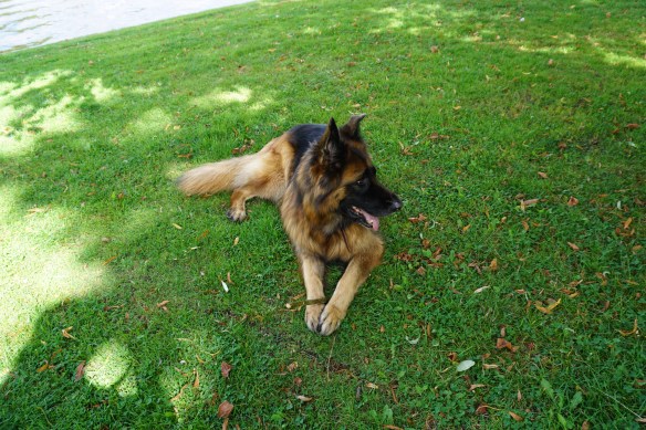 Hij laat het zich goeiig welgevallen, mijn makkelijke mannetje. Hij pubert dus wel, maar op een manier waar menig baasje jaloers op is. De gemiddelde hond luistert op zijn beste moment slechter dan mijn gehoorzaam geboren exemplaar op zijn slechtste moment……