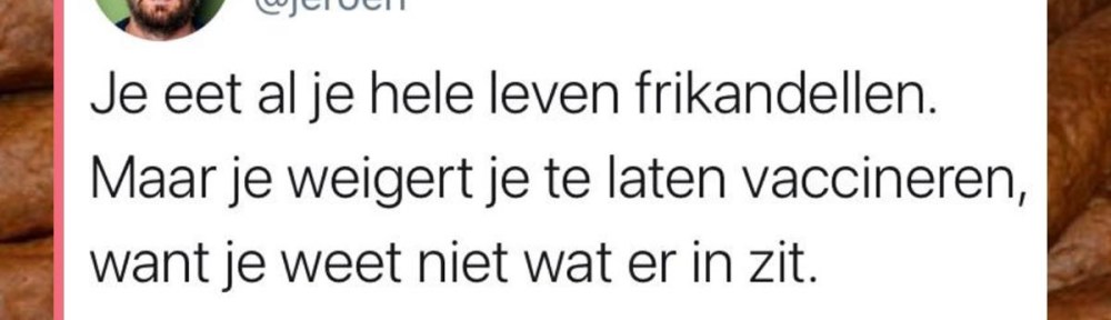 ‘Hele volksstammen zeggen die vaccinatie af, Heks,’ zegt mijn vriendinnetje Trui, die onverwacht even op de koffie komt. We zitten lekker op mijn balkonnetje in het zonnetje. ‘Zo komen we natuurlijk nooit van dat virus af,’ verzucht ze vervolgens, ‘Krijg je weer allemaal mutaties…..’