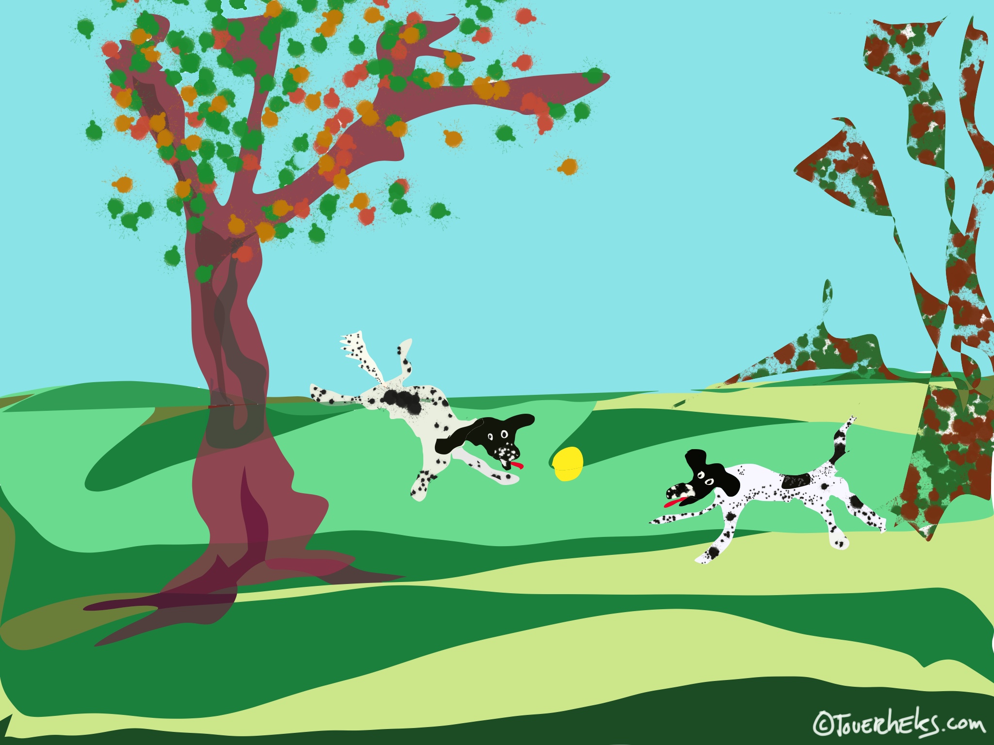 We strijken neer op een bankje en gooien eindeloos balletjes voor VikThor en Freya. Heks heeft een thermos thee meegenomen. Drakenthee. Mijn favoriet.