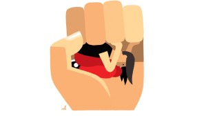Als een duveltje uit een doosje staan nu zowel de man als de vrouw gillend in de steeg. De vrouw wil me te lijf. Haar man probeer het te voorkomen. ‘Vieze vuile teringhoer, kankerhoer, schijthoer, pleurishoer! Je gooit telkens die bak om,’ gilt het mens.