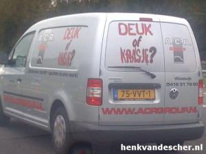 ‘Bij mij heeft hij nooit iets geprobeerd, hoor,’ verklaart ze ongevraagd, ‘Maar vorig jaar had hij weer een vriendin en toen is hij in juni door zijn rug gegaan. Iek denk door die vriendin…..’ Ze kijkt me ondeugend aan, ‘En dat heeft hem de das om gedaan.’