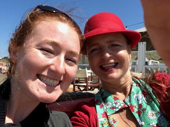 Zo haal ik mijn roodharige zielzuster van het station. We rijden naar het hondenstand in Noordwijk met mijn hondje. Het is heerlijk weer. We wandelen en zwemmen. Drinken thee en kletsen. Gaan ergens lekker lunchen!