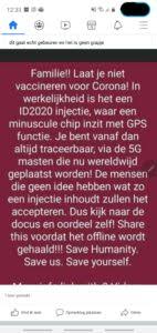 Intussen wil ik eigenlijk wel passeren, maar de Amerikaan staat pontificaal midden op het pad. Hij begint een heel verhaal over Corona, de regering, complottheorie hier, complottheorie daar….. Het duizelt me.