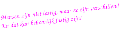 Ik heb geleerd, dat je mensen hun ellende moet gunnen. Het is van hen. Ze mogen ermee doen wat ze willen. Behalve het op mijn bordje kieperen. Daar ligt al genoeg. Ik heb heus mijn eigen portie meegekregen van het leven!