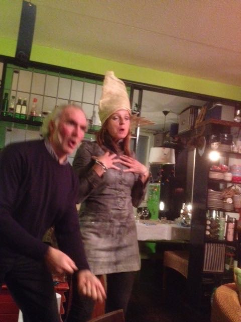 Als ik ins Blau binnenstap zie ik Engel staan. Zij gaat ook kijken. ‘Ik heb vandaag drie keer de hond uitgelaten, boodschappen gedaan, fysiotherapie gehad, een enorme pan zuurkool gekookt, een blog geschreven en nu ga ik ook nog uit. Gekkenwerk natuurlijk….’ fluister ik haar toe. ‘Klinkt goed, Heks, ik herken het. Heb je een goeie dag, dan ga je over je grenzen. Je zal morgen wel voor pampus liggen….’
