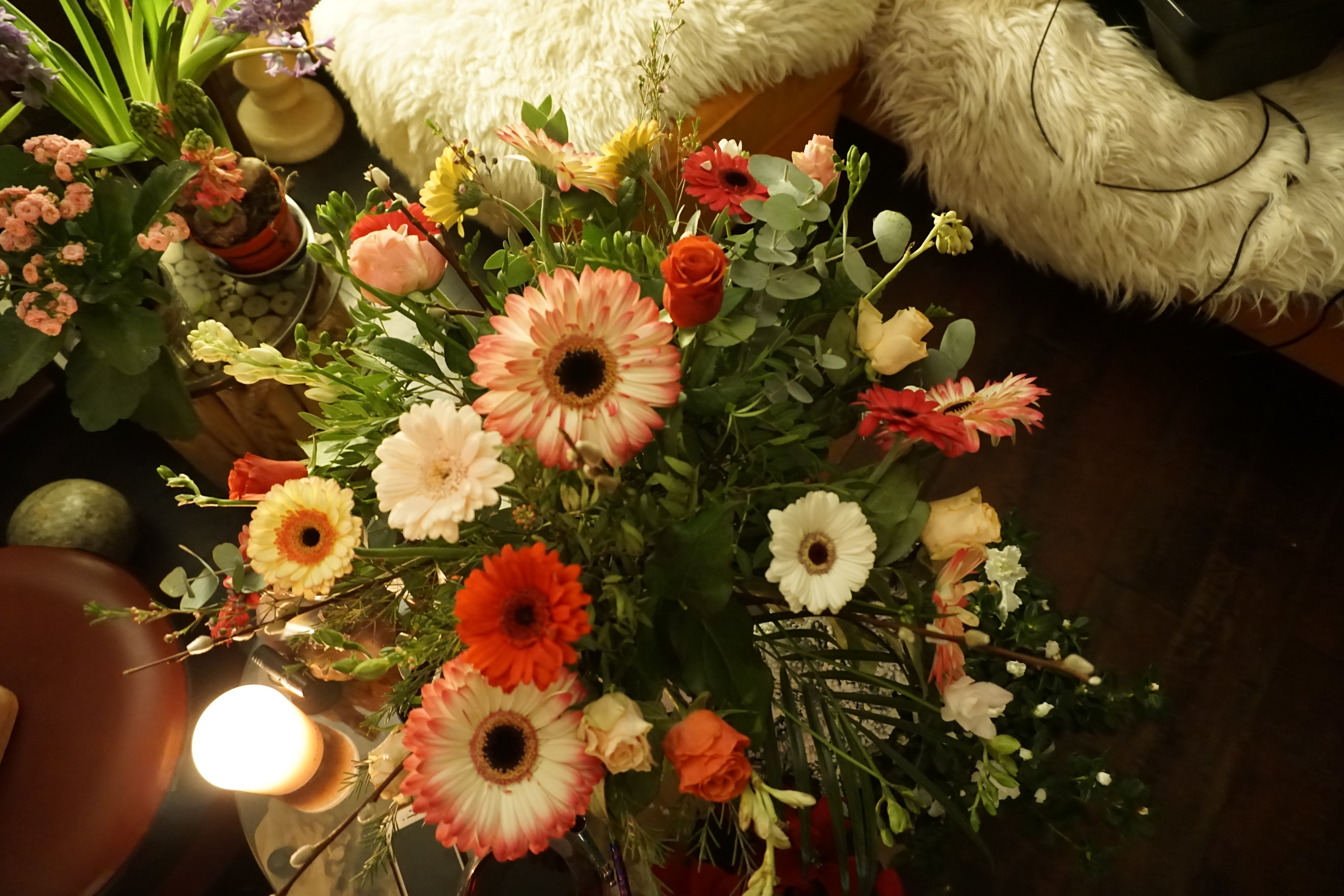 Ha, lekker. Ik werk altijd het beste in de rommel. Chaos prikkelt mijn neiging om er orde in te scheppen. Middels een mooie schikking bijvoorbeeld. Ik probeer verband te brengen in de bloemenzee. Ja, ik ben er maar druk mee.