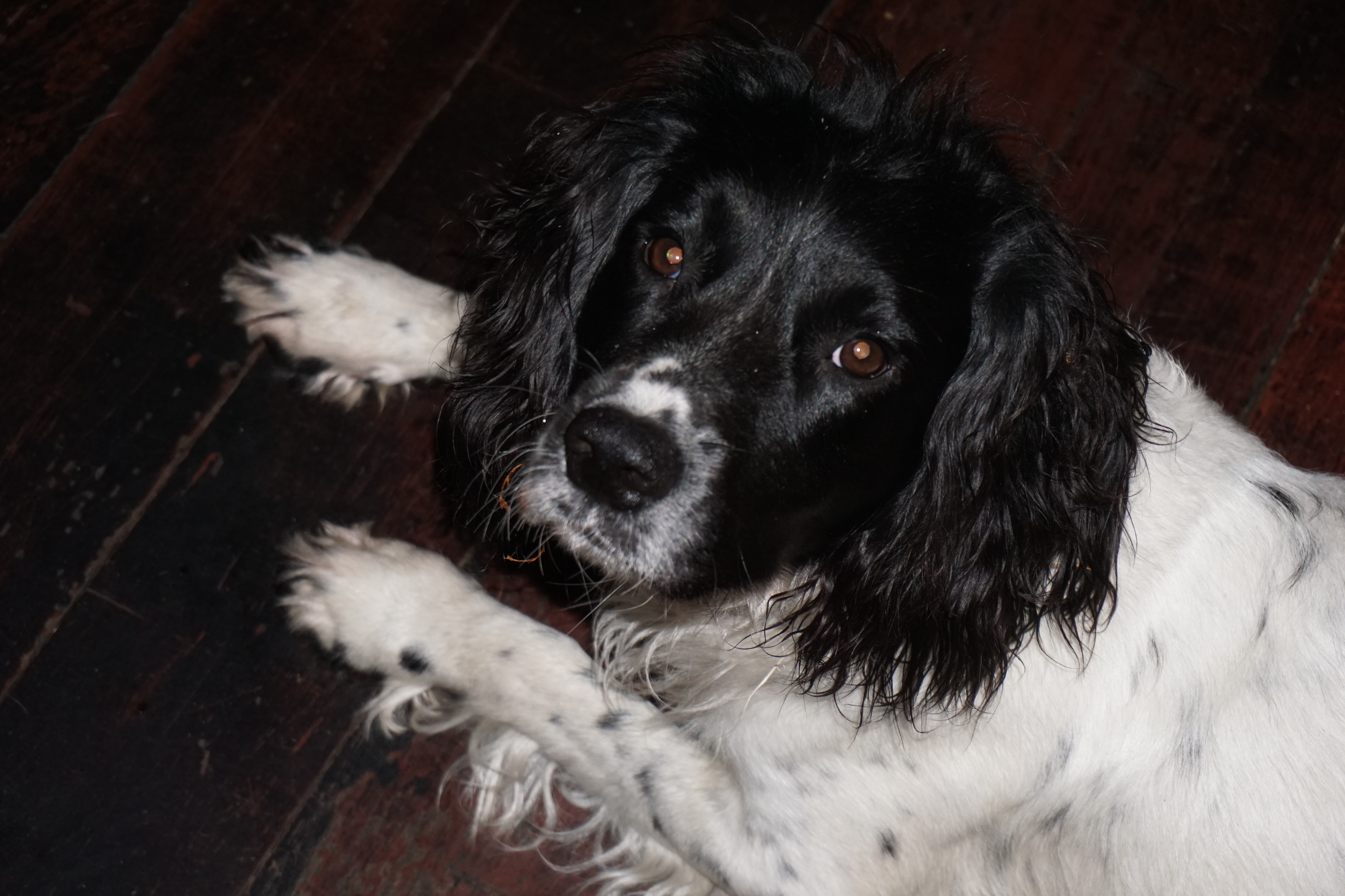 Buiten adem kom ik thuis met mijn aanwinsten. Sjouw pup en pakket de trap op. Zo. Even bijkomen.
