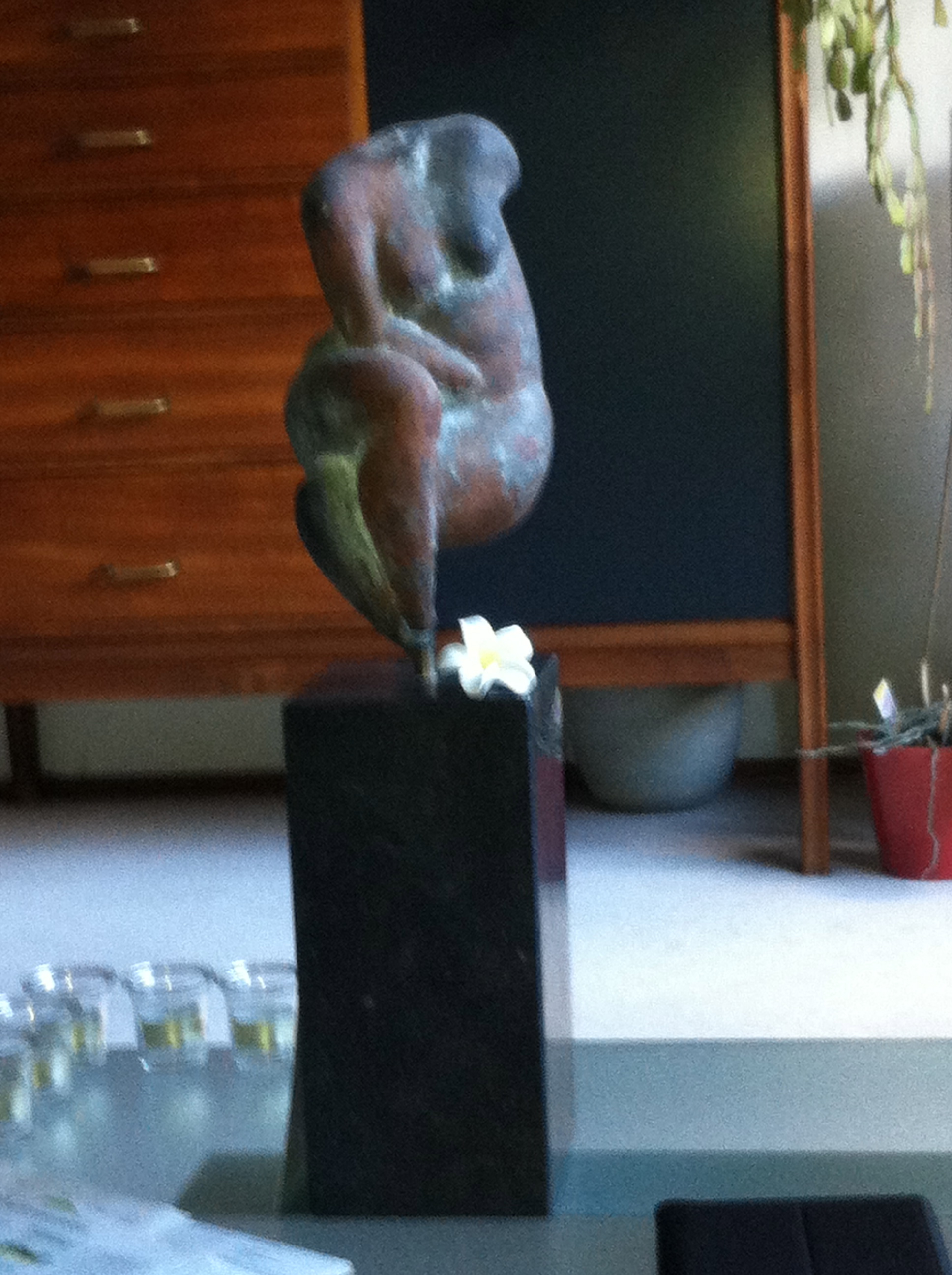 ‘Kom Pluim, we gaan nog even lekker gekke foto’s maken!’ zegt Heks bij het afscheid. Bekkentrekkend kijken we in de camera. ‘De bloemen moeten erop!’ ‘Dank voor die bloemen!’ roept Pluim door het dolle, met een lekker paus-accent. ‘Ja,ja, dank, dank!’ We buigen, wuiven de bloemen heen en weer voor de camera. Pluim ontdekt het gaatje, waar de lens zich bevindt. We maken nog een paar uiterst vreemde foto’s met zijn vinger voor de lens.