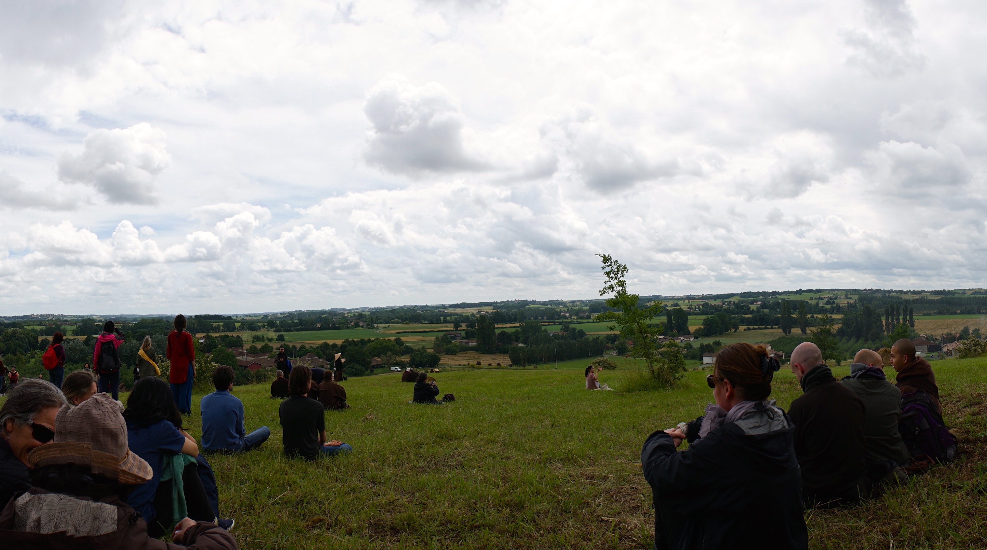 Oh, wat heerlijk om elkaar eventjes te zien! We kennen elkaar uit Plumvillage, waar we 4 jaar geleden onder de bezielende leiding van zuster Orchidee de Maudgalyayanafamilie vormden. Onze zuster, mijn geliefde vriendin, is helaas niet meer onder ons. Maar haar familie is sterker dan ooit.